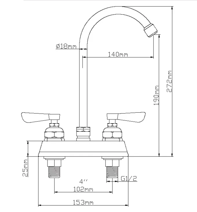 ▪ Commercial-grade sink faucets with brass bodies, stainless steel spouts, and various handle configurations.