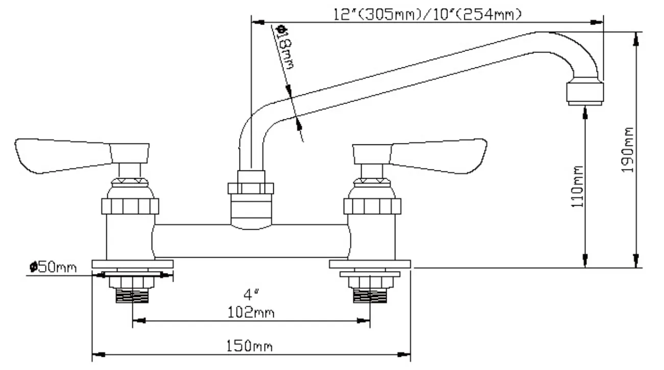 Commercial-grade sink faucets with brass bodies, stainless steel spouts, and various handle configurations. Available in single or double temperature options, designed for durability in high-use environments. Each model in this group shares similar materials and functions, with variations in dimensions, hose lengths, or installation types to suit different kitchen requirements.