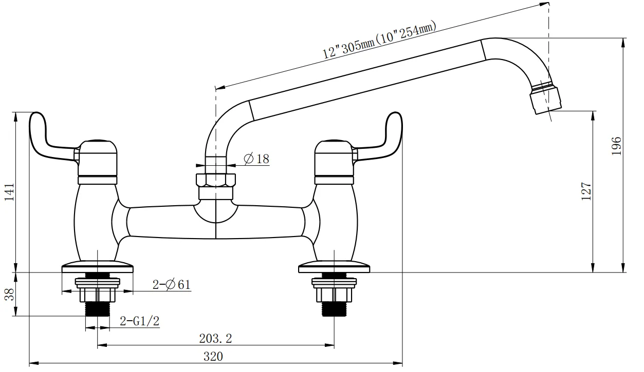 ▪ 10"/12" stainless steel pipe (254/305mm), 18mm diameter.