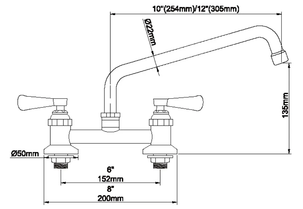 ▪ Commercial-grade sink faucets with brass bodies, stainless steel spouts, and various handle configurations.