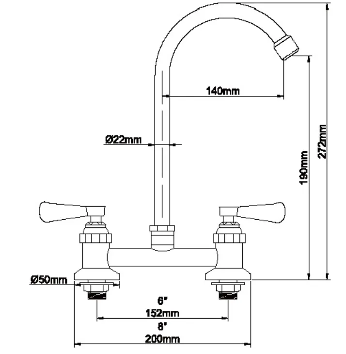 ▪ Commercial-grade sink faucets with brass bodies, stainless steel spouts, and various handle configurations.